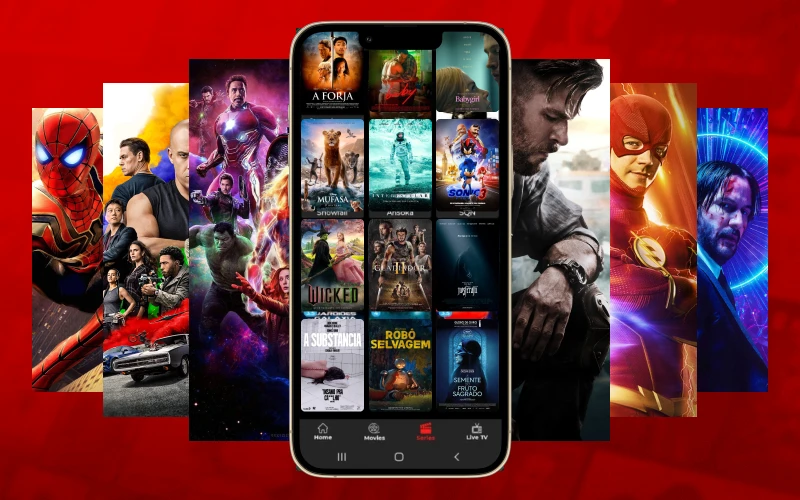 Tenha na sua casa centenas de canais, filmes e séries ilimitados.